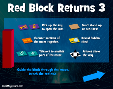 Use arrow keys to move the red square through the maze of balls to the end zone.