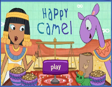 Help the camel camel find his toy by weighing his food.
